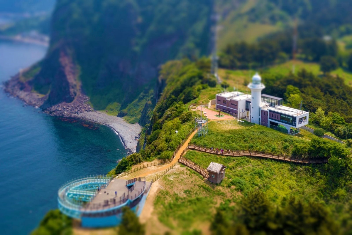 ウルルンド旅行の最大の見どころは、間違いなくテハモノレールに乗って上る大風感展望台だ。モノレールがゆっくり上昇する間に広がる風景は、まるで一枚の東海の絵画のようである。頂上に達すると、ウルルンドの切り立った海岸の絶壁と濃紺の東海が一望でき、ウルルンドの秘境の風景がそこに広がる。ここは「韓国人が必ず訪れるべき韓国観光100選」に選ばれるほど、ウルルンドの中でも屈指の名所として知られている。