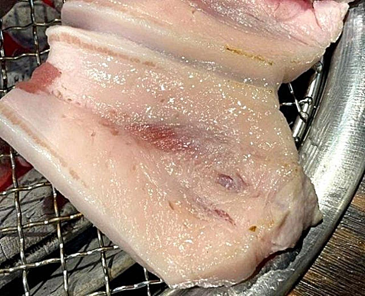 最近話題となった済州の焼肉店で提供された「脂肪分の多い豚バラ肉」。 / オンラインコミュニティ