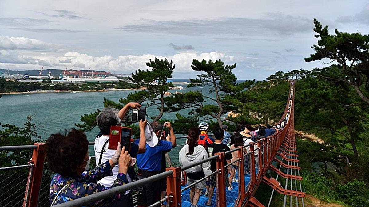 蔚山東区を代表する観光地、大王岩公園の出렁다리(ゆらゆら橋) / 蔚山東区提供