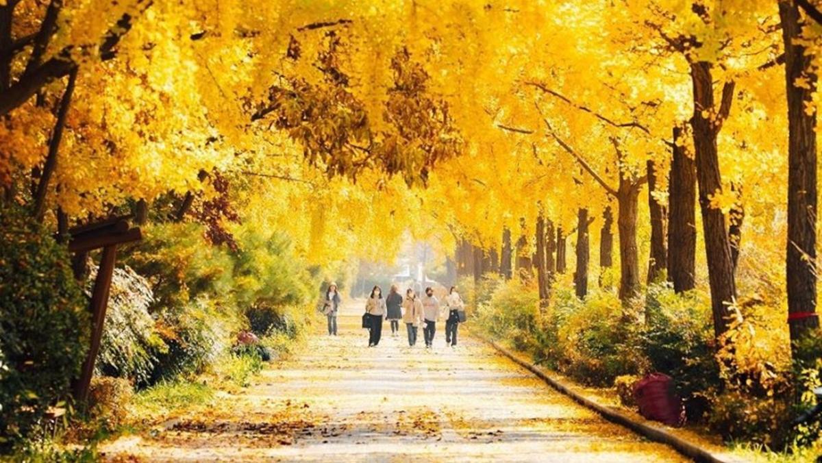 ウィレソンギルは、オリンピック公園の「平和の門」から南側の第2門まで続く約2.7kmの遊歩道で、両側に延びるイチョウ並木が魅力です。毎年11月になると、美しいイチョウが作り出す黄金色のトンネルが、一生忘れがたい絶景を演出します。隣接するオリンピック公園では、紅葉を眺めながら愛犬と散歩したり、運動を楽しむことも可能です。今年は、ソウル市が選定した『ソウル紅葉スポット103選』にも選ばれました。