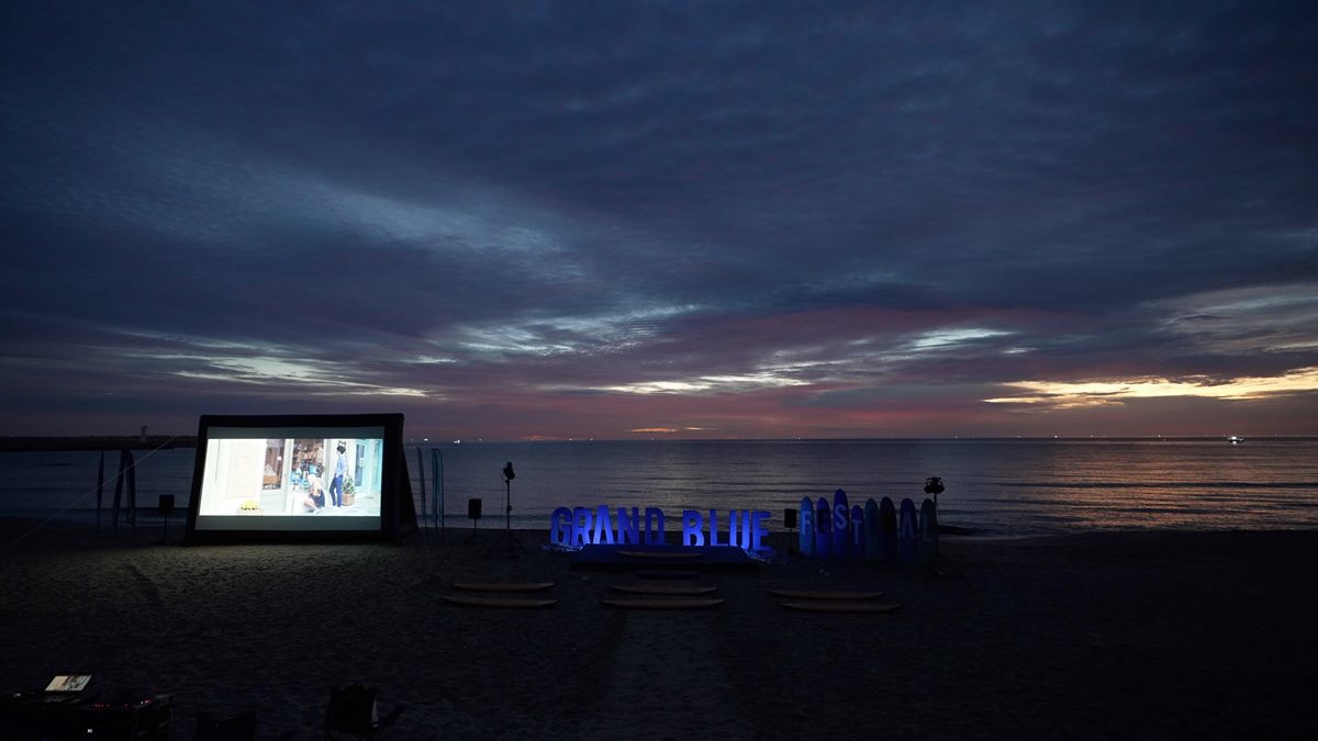 映画祭の名称「グランブルー(GRANBLUE)」は、フランス語で「深く広い海」を意味する「Grand Bleu」と同じ発音である。深く広い海を背景に、夕暮れ後の闇に包まれたビーチに設置されたスクリーンは、夜空と濃紺の海との境界を曖昧にし、砂浜に自由に座る観客に海上に広がる映画館という体験を提供する。映画と海を同時に楽しむグランブルーフィルムフェスティバルは、『死島サーフィン日記』『青い塩』『シウォルエ』『君の中のブルー』などを手掛けたイ・ヒョンスン監督が総指揮を執る。