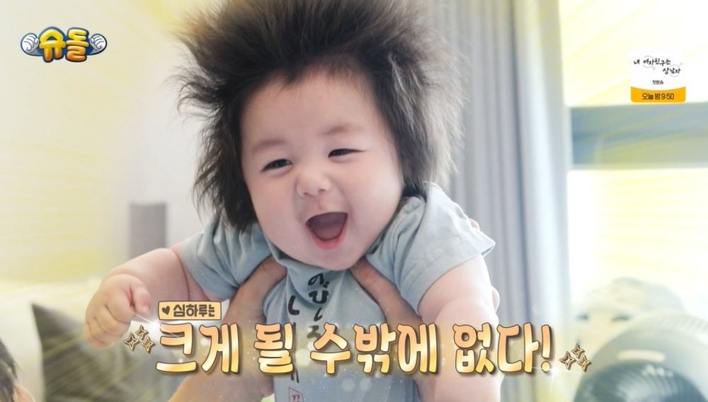 シム・ヒョンタクはハルについて「とても可愛い。全身が可愛いが、特に髪の毛が豊富なのが特徴だ」と述べ、その驚くべき髪量に触れた。「妻は上の髪が目立ち、私は横の髪が目立っている」と説明すると、チェ・ジウは「まるで赤ちゃんライオンみたい、ライオンの鬣のようでとても可愛い」と感嘆した。
