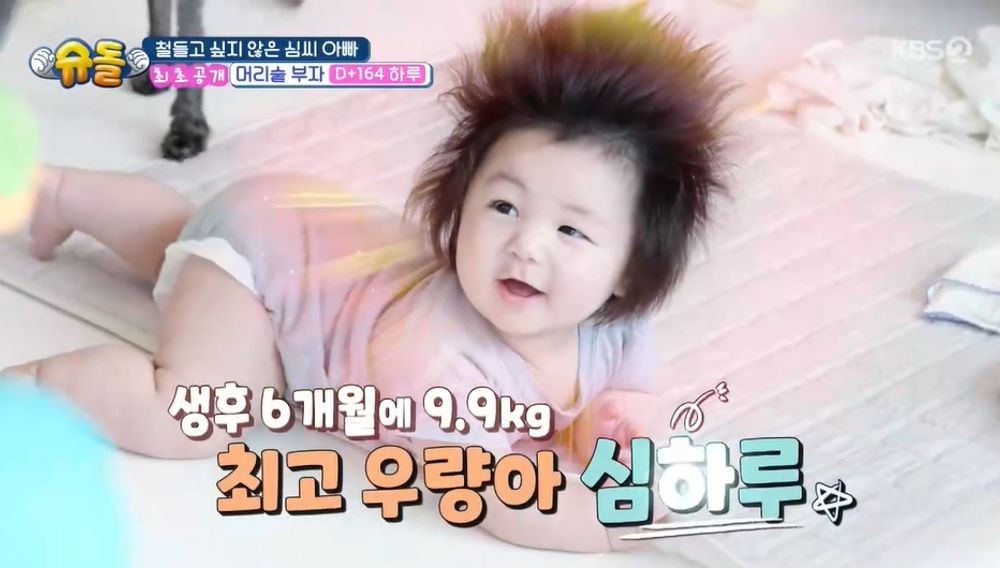 生後6ヶ月のハルの体重は9.9kg。パク・スホンが「ジェイは7.4kgだった」と驚くと、シム・ヒョンタクは「毛のせいかもしれない」と冗談を交えつつ、「私も妻も大きな赤ちゃんだった。ハルもまた大きな赤ちゃんだ。今は体重が上位1%に入っている」と明かした。