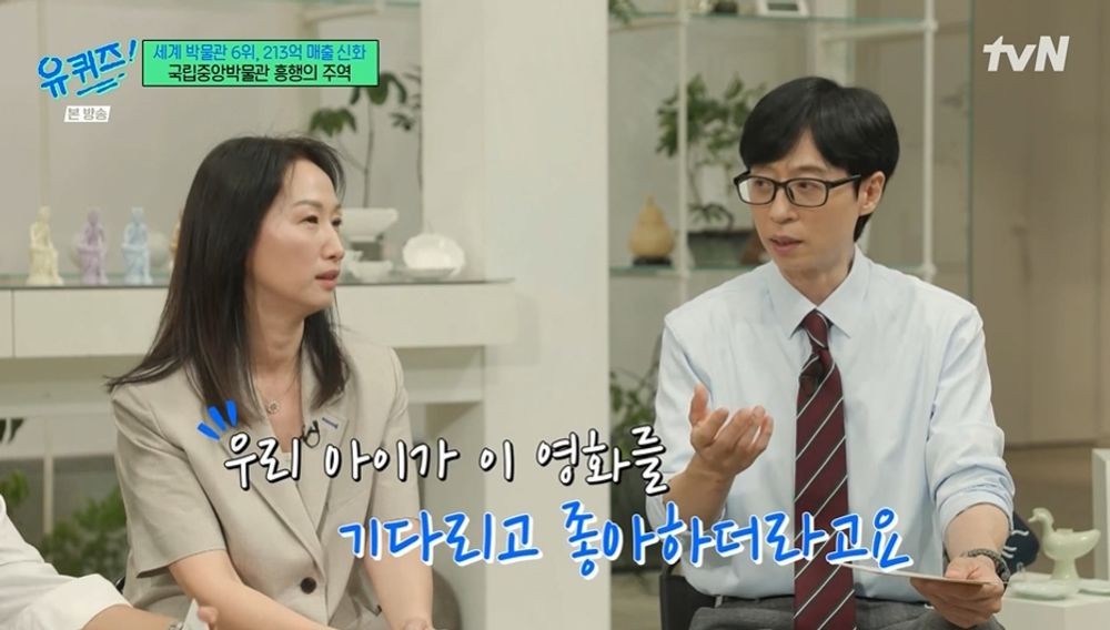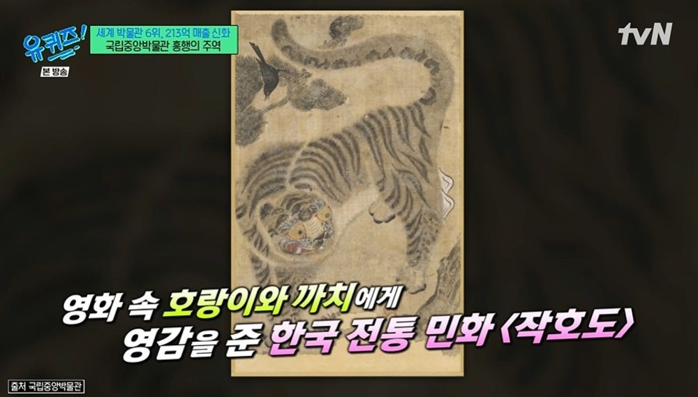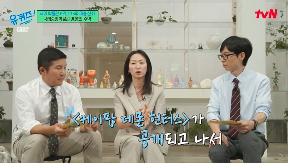 キムチーム長は「最近、虎が非常に人気だとご存知か」と問い、Netflixアニメ「K-POPデーモンハンターズ」(以下「ケデハン」)に触れた。「虎が大変注目を集め、デジタル映像館でもその効果が現れている。『ケデハン』の公開後、来館者数は急増した。作中のキャラクターが博物館の伝統的な民画に描かれた虎とそっくりで、その虎をモチーフにした商品は即完売した」と説明した。これを受け、ユ・ジェソクは「公開前から子どもがこの作品を楽しみにしていた。一緒に観た時、歌とダンスが素晴らしかったので、その曲がランキングに入るのも納得だ」と共感を示した。