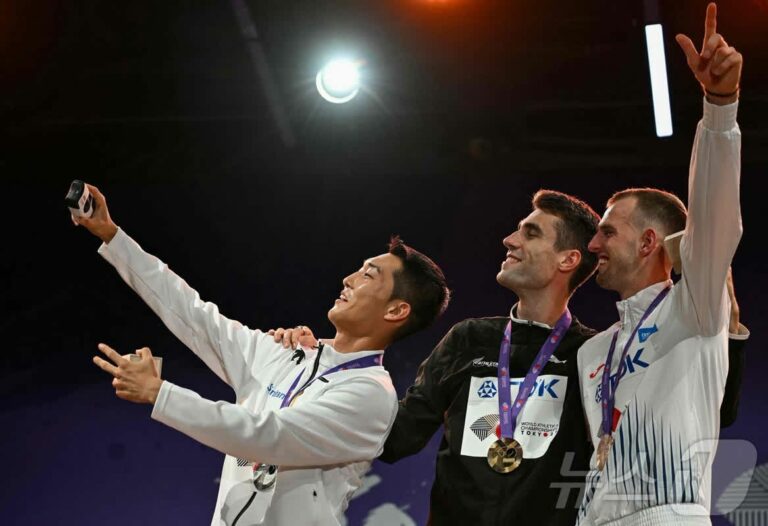 Valuable silver medalist Woo Sang-hyeok beams at awards ceremony… Selfie with his gold medal. U Sang-hyeok (29, Yongin City Hall), South Korea’s top high jumper who earned a valuable silver medal at the 2025 World Athletics Championships in Tokyo, smiled brightly as he stood on the podium. The organizing committee for the event held an official high jump awards ceremony at the Medal Plaza in front of the National Stadium in Tokyo, Japan, on the afternoon of the 17th. U Sang-hyeok