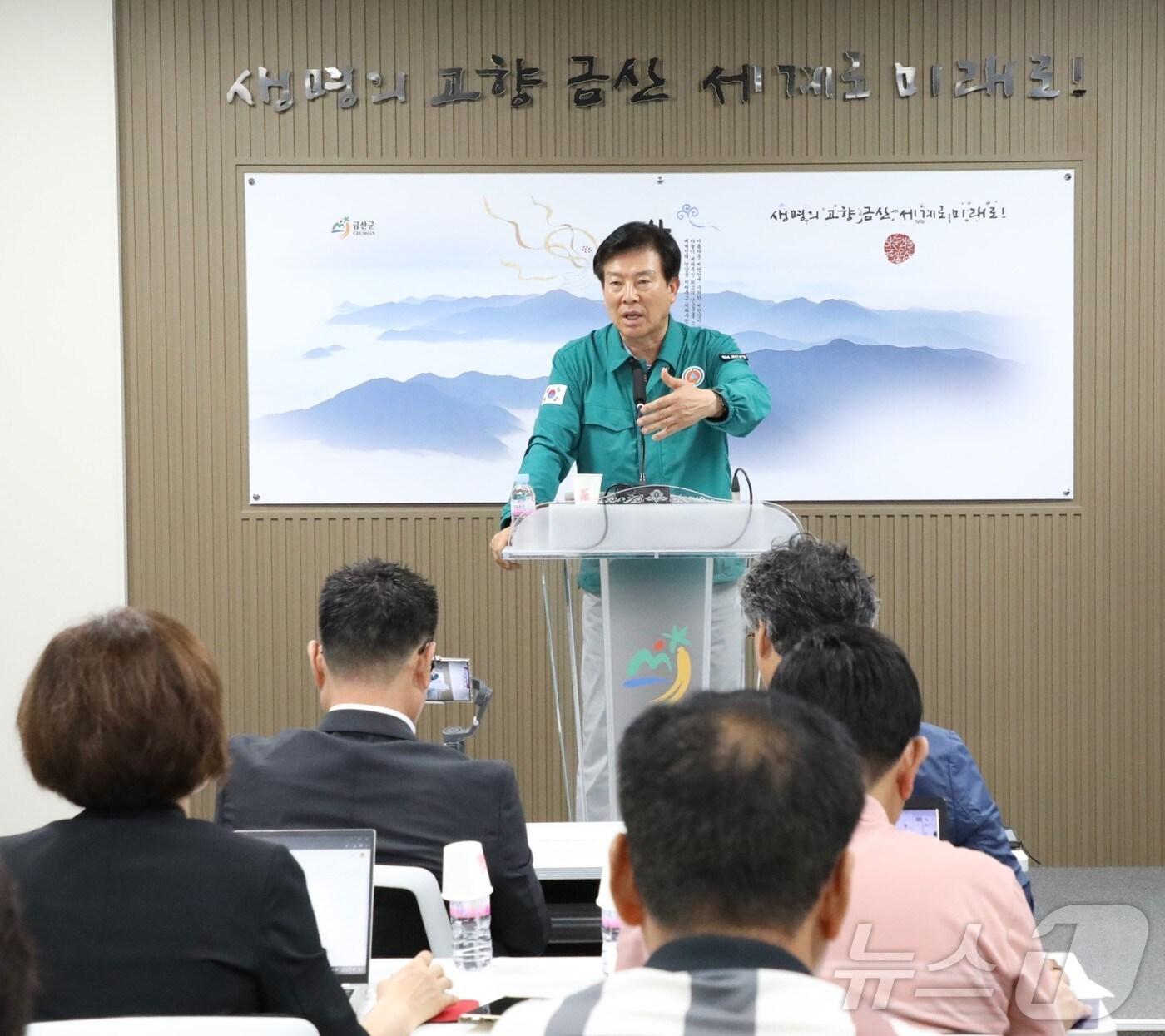 park jun gi ㅋㅋ 다시했지롱, the mayor of Gunsan, holds a press conference with journalists. (Provided by Gunsan County) / News1